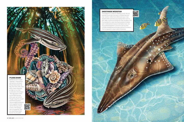 Sharks aren’t mindless killers; they’re beautiful, intelligent, and essential to our oceans. Yet, an alarming 200 sharks are lost from our oceans every single minute. Through 200 Sharks, I’m reshaping the narrative surrounding these misunderstood creatures. This ongoing social media campaign combines 200 illustrations of sharks, rays, skates and chimaera's with engaging videos, storytelling, and educational content for each species. By celebrating their beauty and diversity, the project aims to inspire over 1 million people to see sharks and rays in a new light and take action to protect these vital ocean guardians.